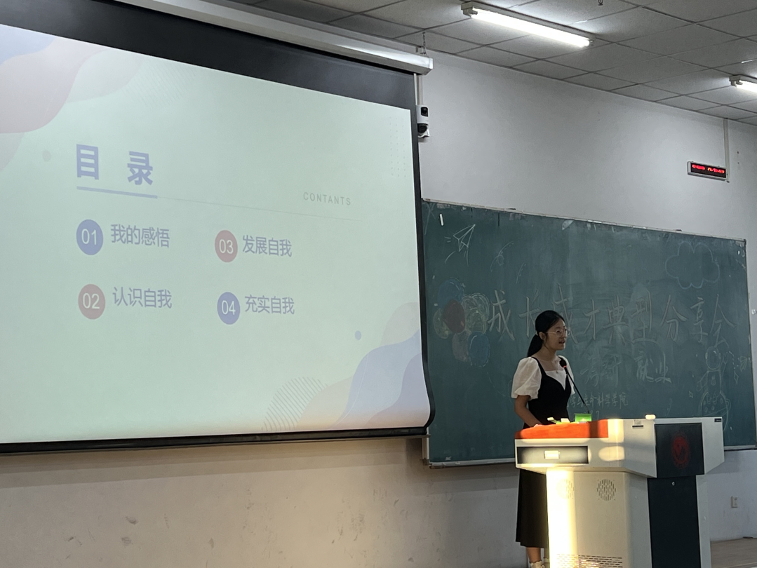 新闻网讯(通讯员:王宝旭、霍思琪)春风得意时,少年凌云志。为帮助新生同学对于个人发展的更好规划,动员同学们认真学习奋进向上的热情,2023年9月7日,在北湖西区东阶301,我院举办了“成长成才典型分享会”,邀请王梓涵、喻浩瀚、刘浩、黄子阳四位优秀学生代表为大一新生做出了精彩的报告。