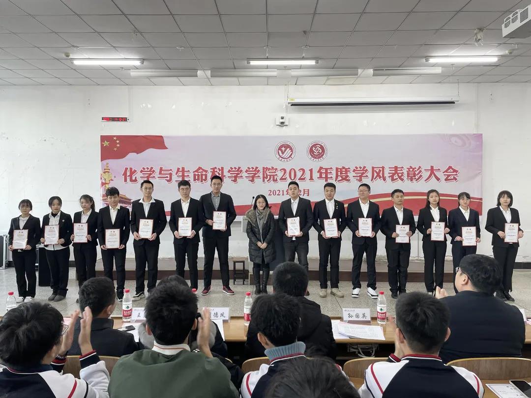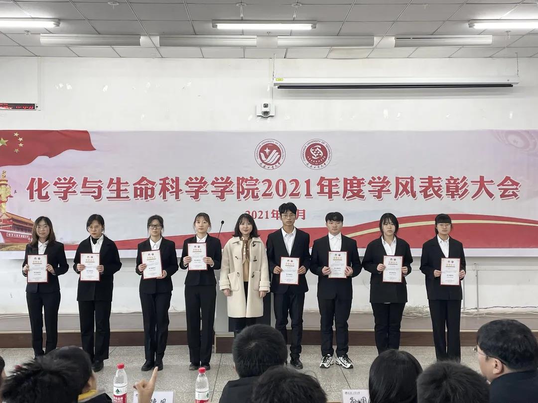 在隆重的国歌声中,2021年度表彰大会拉开帷幕。学院党委副书记徐秉锋首先宣读了《关于表彰2021年化学与生命科学学院学风建设先进集体和个人的决定》,他强调,希望受表彰的集体和个人戒骄戒躁,谦虚谨慎,再接再厉,再创佳绩;同时号召全院学生以受表彰的集体和个人为榜样,努力加强班级学风建设,争创学院良好的学习氛围,为促进学院向更高层次发展做出更大的贡献。