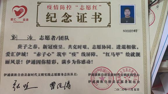 该同志始终坚信“助人为乐”人生准则,为别人带去光芒,就是给自己意义与快乐。2017年至今,她始终致力于脱贫攻坚、疫情防控、人口普查等公益志愿服务,累计志愿服务时长达二百小时以上。自2017年加入吉林省伊通满族自治县“益心”公益组织后,曾多次协助地方政府从事脱贫攻坚公益志愿服务。2020年新冠疫情爆发以后,他的脑海里始终出现“疫情就是命令,防控就是责任”这句话,随后毅然决定加入伊通满族自治县大学生志愿服务队,先后四次投入到社区疫情防控工作中去。多次荣获地方政府颁发的荣誉证书及bw必威西汉姆联官方网站优秀志愿者标兵称号。2022年,新冠疫情席卷吉林,作为学生党员、学生干部,他始终坚守共产党员的初心与使命,毅然承担起了学院志愿者工作负责人及寝室楼宇负责人等工作。