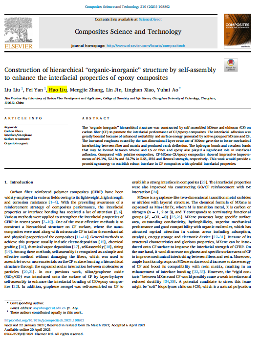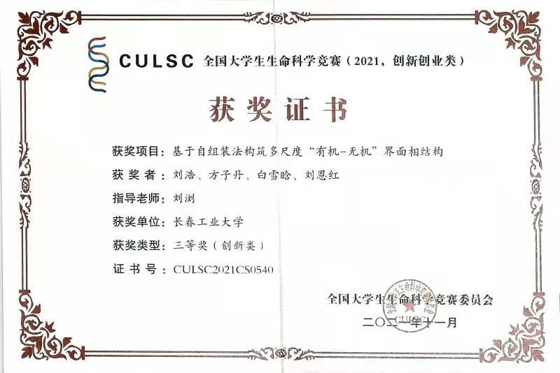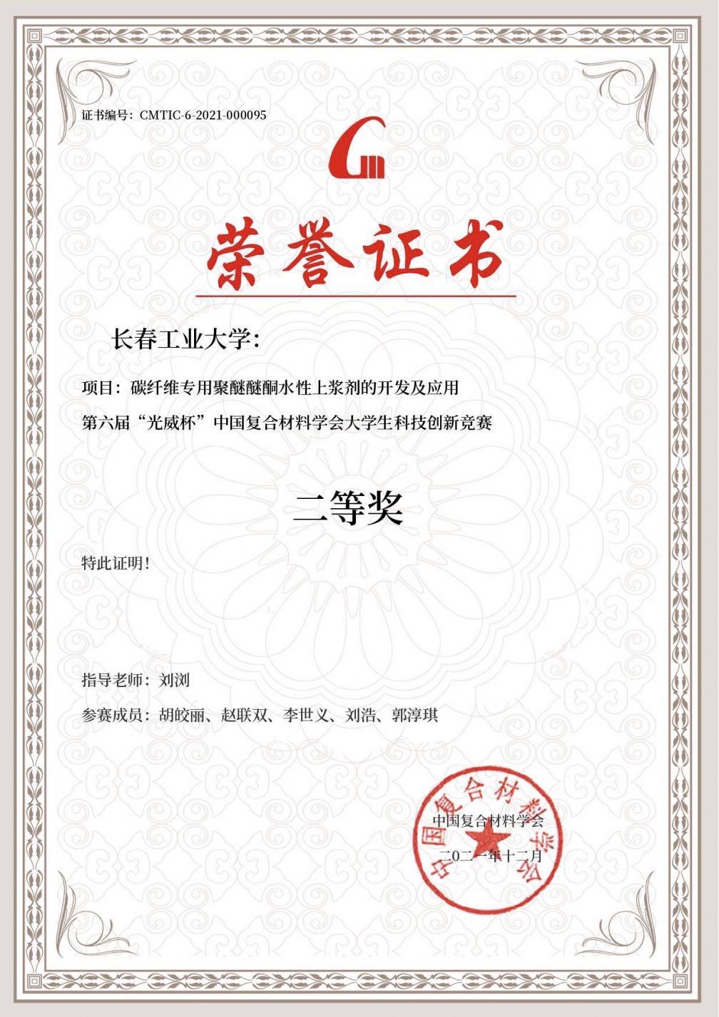 “天道酬勤”是沉淀在科技工作者基因血脉里的朴素信仰。在一个个平凡的日出日落间,一幕幕平常的实验场景中,大家都能看到刘浩同志的身影。作为一名理工类专业学生,她怀揣科技报国的理想追求。科研方面,在老师的指导下,该同志在本科期间就积极参与教师课题组科研项目,参与省级科创项目两项,以合著者身份在国际复合材料领域顶级期刊《Composites Science and Technology》(IF:9.1)上发表Construction of hierarchical “organic-inorganic” structure by self-assembly to enhance the interfacial properties of epoxy composites论文;在《Composites Part-B》(IF:13.1)上发表Water-based PEKC-COOH sizing agent for enhancing the interfacial adhesion of carbon fiber/polyether-ether-ketone composites论文。以项目负责人身份完成2021年度bw必威西汉姆联官方网站大学生创新创业训练项目:水性聚芳醚酮上浆剂对CF/PEEK复合材料界面性能的影响,并荣获优秀结题项目。