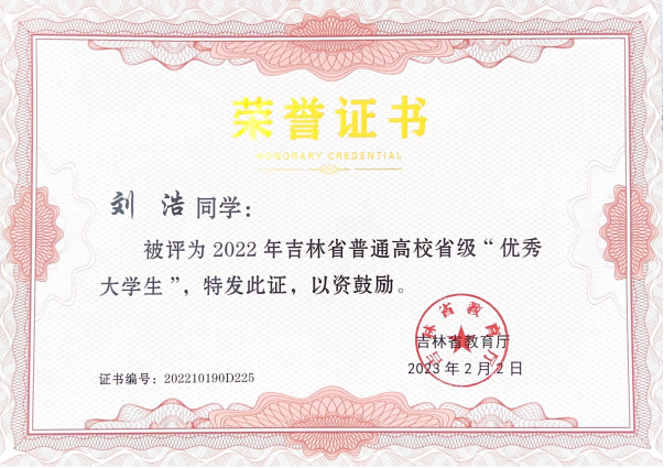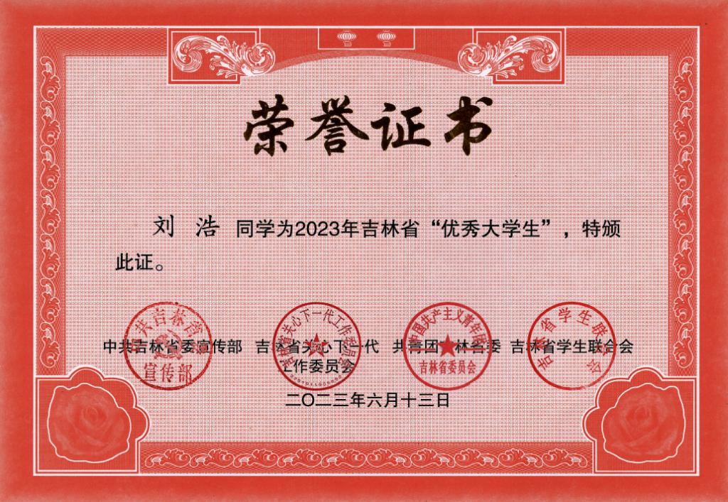 习近平总书记说过:理想信念是共产党人的精神之钙。作为新时代研究生,刘浩同志于2021年5月31日加入党组织以来,理论水平和思想境界得到大幅提升,在思想和行动上与党中央保持一致,以“党性最强,作风最正,工作拔高”为具体要求,不断加强对习近平新时代中国特色社会主义思想和党的二十大精神的学习,深刻领悟“两个确立”的决定性意义,增强“四个意识”、坚定“四个自信”、做到“两个维护”。在思想上、作风上加强自身建设,恪尽职守、竭诚奉献、辛勤工作、大胆创新、对党绝对忠诚。作为一名党员,他主动承担党建工作,落实相关制度,协助院党委、研究生党支部、学生党支部(2021.06-2023.06)开展各项工作,积极发挥党员先锋模范作用,切实将各项学生工作和党建工作进行有机融合,推进各项工作落实到位。该同志在近年来多次荣获先进个人称号,截至目前,已获得由中共吉林省委宣传部、共青团吉林省委颁发的吉林省优秀大学生(实践专项),由吉林省教育厅颁发的吉林省普通高校省级优秀大学生,由共青团吉林省委颁发的吉林省大学生自强之星,由长春市共青团颁发的长春市向上向善好青年等荣誉称号,在学生群体中起到模范带头作用,个人典型事迹也被吉青飞扬,吉青学联等媒体报道。