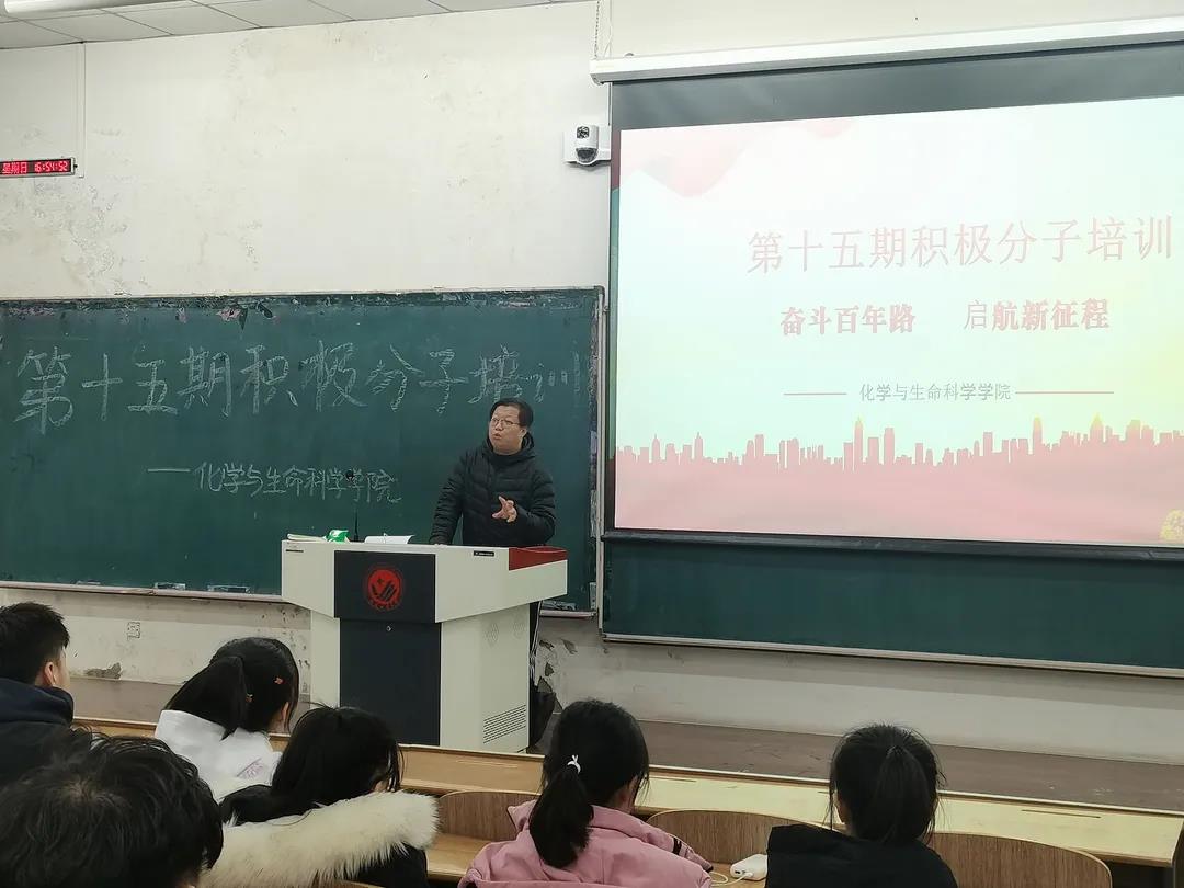 新闻网讯(通讯员 卢泓妍为加强对入党积极分子的培养、教育和考察,帮助入党积极分子不断提高思想理论水平,确保新党员发展质量。12月12日下午,我院分党校于北湖校区西区西阶101教室召开第十五期积极分子培训班。本次党课由研究生党支部书记张烨主讲,2020级入党积极分子参与党课。