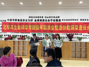 新闻网讯(通讯员:骆弟银)冷“冬至”,暖“化生”。12月22日,化学与生命科学学院工会在南湖校区教工食堂举办新年联欢会暨退休教师荣退仪式活动。学校工会主席任红应邀参加此次活动。
