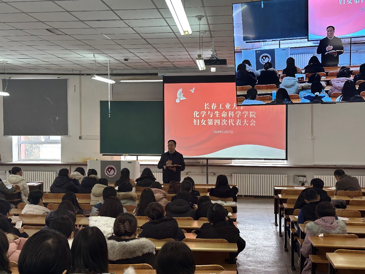 2024年11月27日,化学与生命科学学院召开妇女第四次全体大会。学院领导班子及全体女教工参会,会议由学院党委书记朱兴国主持。