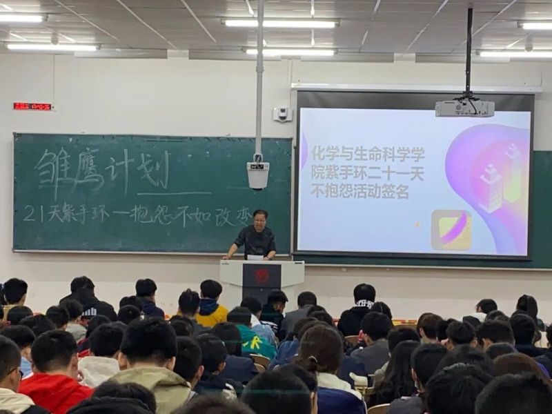 新闻网讯(通讯员林雅晴)为培养2020级新生乐观积极的人生态度,营造阳光向上的生活氛围,以平常心态面对生活挫折。10月21日下午,我院于北湖校区西区西阶201教室开展“21天紫手环—抱怨不如改变”活动,2020级全体新生参与其中。