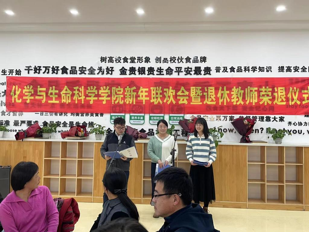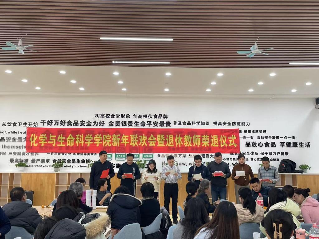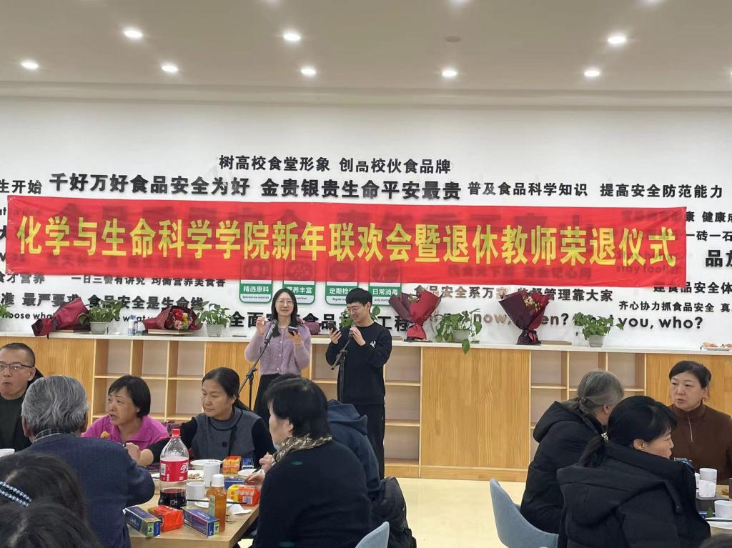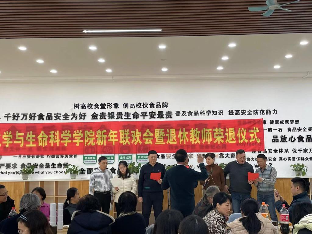 新闻网讯(通讯员:骆弟银)为了感谢我院老师们过去一整年的付出,丰富教职工业余文化生活,增进相互间的沟通交流,12月22日,我院工会在南湖校区教工食堂举办新年联欢会暨退休教师荣退仪式。