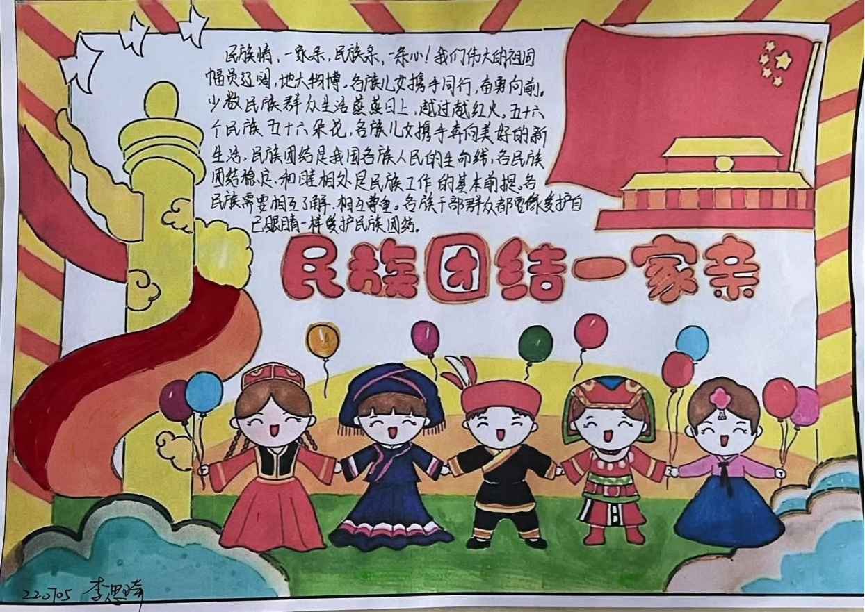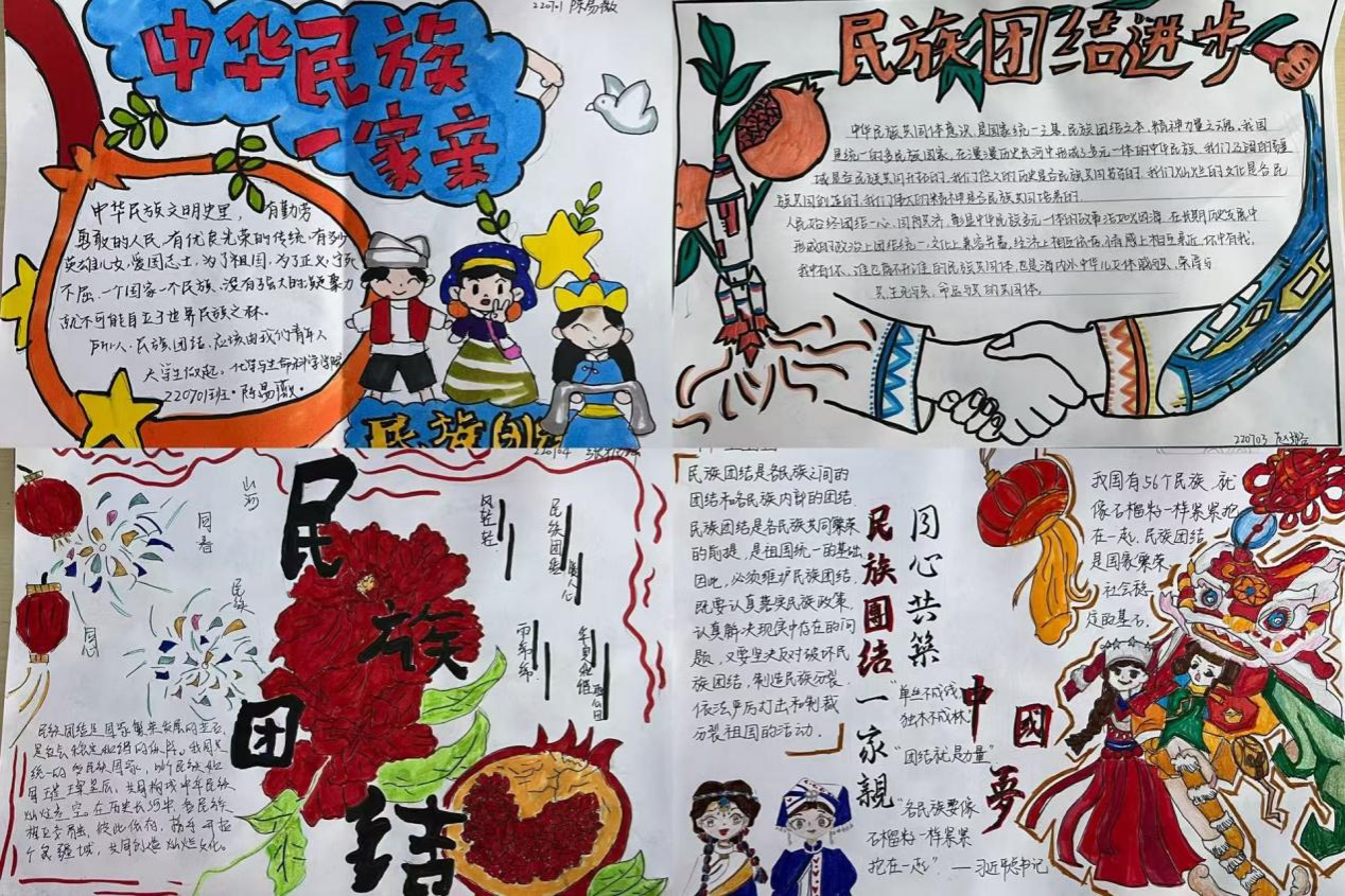 为增强同学们的民族团结意识,利用五月民族团结进步宣传月,学生党支部举办了民族团结手抄报大赛。活动中,同学们积极参与,用画笔描绘出民族团结的动人画面,作品色彩鲜明、亮点纷呈,展现出丰富的创意与对民族团结的深刻理解。此次活动增强了同学们的动手能力与艺术创作力,让大家在创作过程中,树牢民族团结意识,增强民族自豪感。