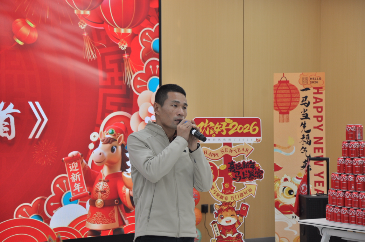 联欢会伊始,副院长刘宇登台致辞。他首先向全院师生致以最诚挚的新年祝福,回顾学院过往一年在教学、科研与人才培养上的丰硕成果,肯定了师生们的辛勤付出,同时寄语全体学子不负韶华、勤学笃行,祝愿老师们工作顺遂、阖家安康,愿学院在新的一年里再创佳绩、勇攀高峰。致辞结束后,刘宇副院长惊喜带来经典歌曲《再回首》,醇厚的嗓音搭配深情的演绎,瞬间点燃现场氛围,台下掌声与欢呼声此起彼伏,将联欢会的热度推向首个高潮。