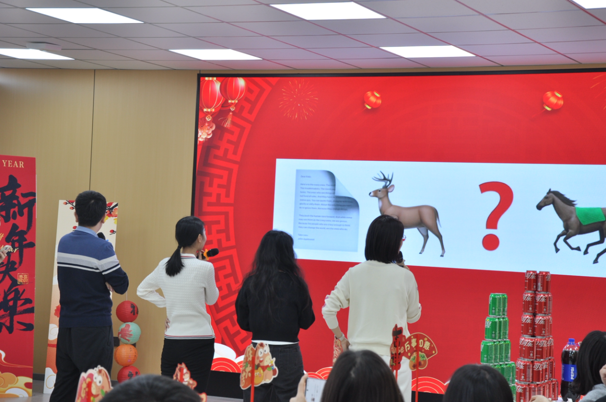 精彩的文艺表演之余,趣味互动游戏环节更是让现场气氛持续升温。emoji猜猜乐妙趣横生,师生们脑洞大开,在趣味表情中竞猜词语,欢乐不断;一马当先游戏紧张刺激,参与者奋勇争先、默契配合,在比拼中收获快乐与友谊;你画我猜环节笑点频出,画笔传情、心有灵犀,师生同台互动、其乐融融,欢声笑语回荡在现场每个角落,进一步拉近了师生距离,让温暖与喜悦浸润人心。