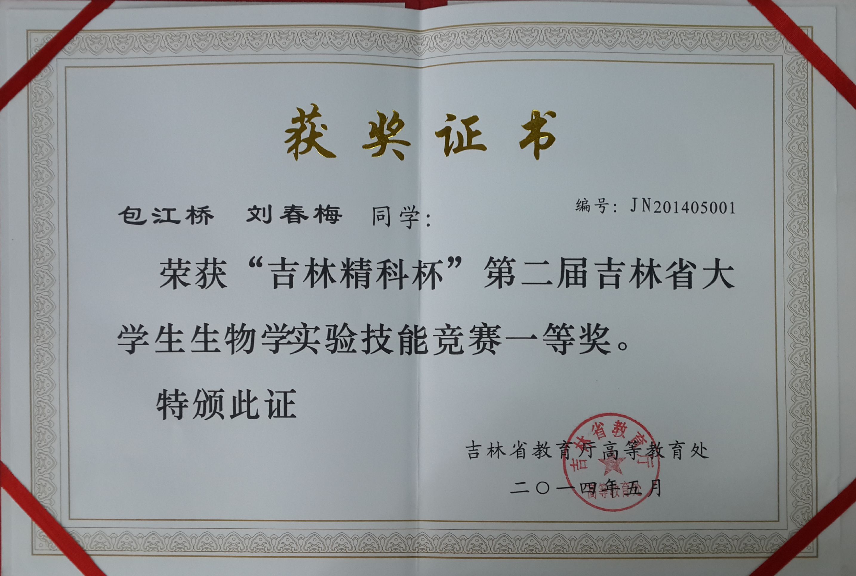 2014年“吉林精科杯”吉林省第二届大学生生物学技能竞赛二等奖(一)