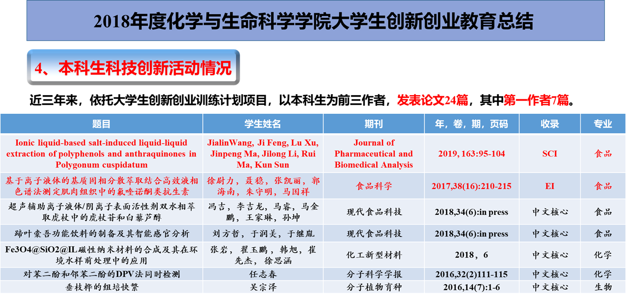 2018年度化学与生命科学学院大学生创新创业教育总结