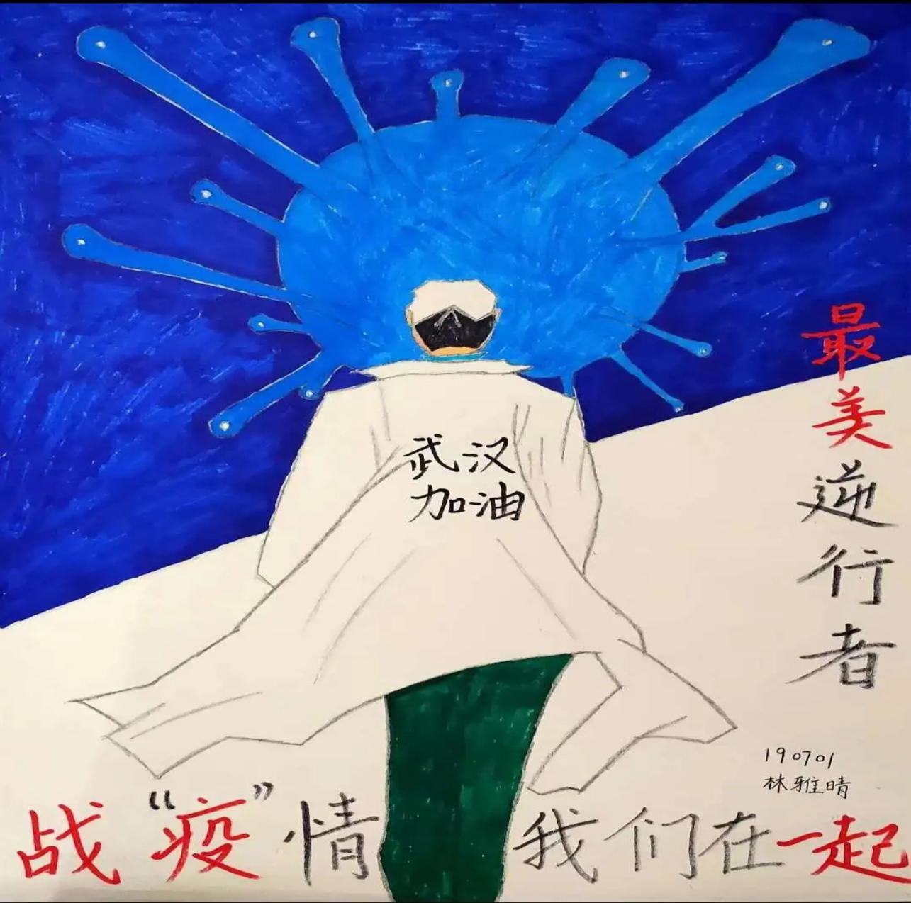 我院学子采用了视频,书法,绘画,音乐等方式传达了新时代青年大学生防疫,战疫,抗疫的决心和信心。利用新媒体网络平台,用文字书写逆行者的故事,礼赞共赴难关的抗疫英雄;用绘画描绘奋战一线的抗疫战士,纪念抗疫英雄的英勇身影;用视频传达同心战疫的决心,表现青年完善自身提升自我的蓬勃力量。
