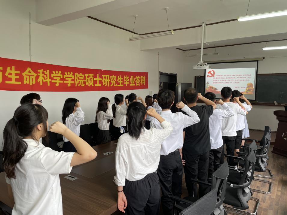 誓言铿锵,激荡着坚定的信仰;红心向党,汇聚起前行的力量。会后,学院师生党员代表面对鲜红的党旗,高举右手庄严宣誓,重温自己对党忠诚的誓言,表达了为党的事业奋斗终身的决心。