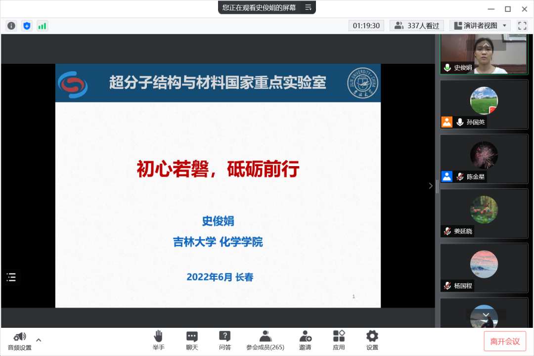 为加强选树表彰先进榜样,激发学生学习热情持续营造优良学风,6月30日,我院召开第三期化生讲堂·“疫”线课堂,会议由副院长孙国英主持,2012级优秀校友姜延晓,王显,史俊娟,陈金星受邀参加会议并做报告,分享十年来的学习工作的宝贵经验,研究生及部分本科生参加了此次会议。
