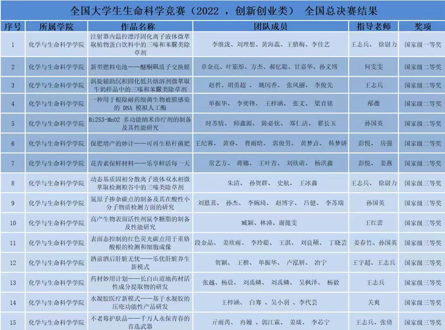 热烈祝贺我院参赛团队在全国大学生生命科学竞赛(2022,创新创业类)中再创佳绩。