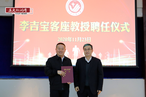 报告会前,举行了李吉宝客座教授聘任仪式。张会轩为李吉宝董事长颁发客座教授聘书并对李吉宝莅临学校指导交流、受聘我校客座教授表示热烈欢迎和衷心感谢,同时高度赞赏李吉宝董事长在汽车轻量化领域的斐然成就,表示李吉宝董事长受聘为学校客座教授将进一步开拓师生国际化视野,积极推动学校人才培养水平与毕业生就业质量的新提升。李吉宝董事长发言中感谢学校的信任和支持,对学校在通用机械工作的校友给予高度评价,并表示今后将依托通用机械及本人丰富的工程项目实践,帮助师生深化对汽车零部件制造业的了解,开拓国际视野,积极推动学校毕业生加盟相关行业优质企业,为振兴民族工业做出贡献。