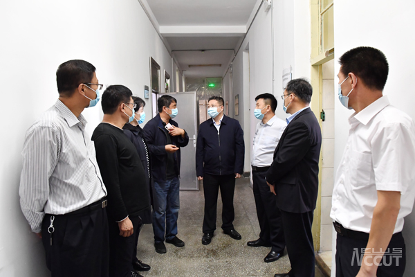 新闻网讯(通讯员 倪天卉)9月18日下午,吉林省教育厅副厅长刘青川一行来到我校,对学校新学期疫情防控工作进行检查督导。学校党委书记孙长智,校长张明耀,副校长王二辰,党委常委、党委宣传部部长、党委教师工作部部长王鸣晖及相关部门负责同志陪同检查。