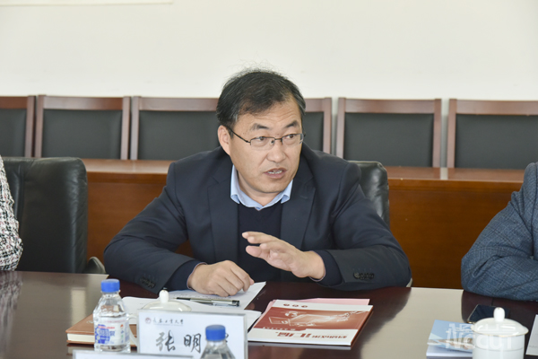 校长张明耀主持会议并对来访一行表示热烈欢迎