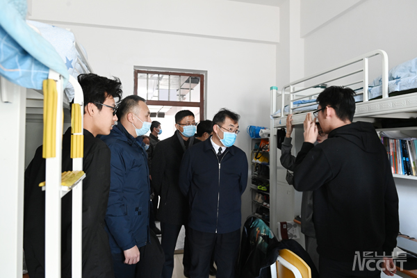 党委书记孙长智带队在南湖校区实地走访各学院、学生宿舍、食堂和学校核酸检测点,详细询问了开学准备情况、师生返校报到流程、教育教学安排、师生健康状况、校园疫情防控措施落实、生活服务和后勤运行保障情况。孙长智强调,开学后校园人群高度密集,要切实提高政治站位,确保各项疫情防控措施不打折扣落实到位,加强防疫物资储备,尽快完成全员核酸检测工作任务,确保校园安全稳定。
